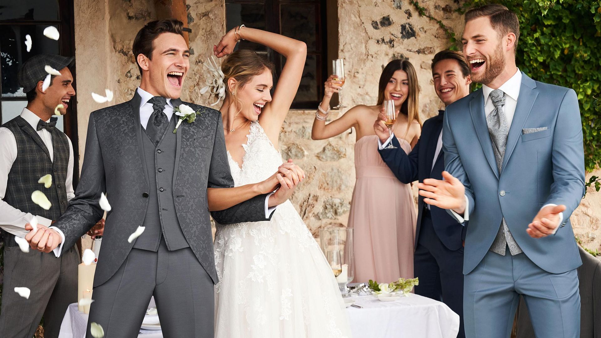 ... bietet Hochzeitsanzüge für den Bräutigam in verschiedenen Kollektionen und Marken verschiedene Stilrichtungen für Ihren schönsten Tag im Leben an. Mit WILVORST After Six finden Sie einen klassisch eleganten und modernen Hochzeitsanzug mit den passenden Accessoires wie Weste, Plastron & Mehr. COOL Wedding, als Kapsel von After Six, trägt dem Trend Rechnung, dass der Bräutigam und seine Freunde ihre Outfits aufeinander abstimmen. Green Wedding ist die erste Kollektion, die sich mit Nachhaltigkeit, Fairness und Natürlichkeit beschäftigt. Prestige by WILVORST steht für hochwertigste Anzüge im italienischen Design. TZIACCO fokussiert sich auf außergewöhnliche, royale Schnitte und hat seit kurzem auch exklusive Modelle für Bräute und Trauzeuginnen im Angebot.